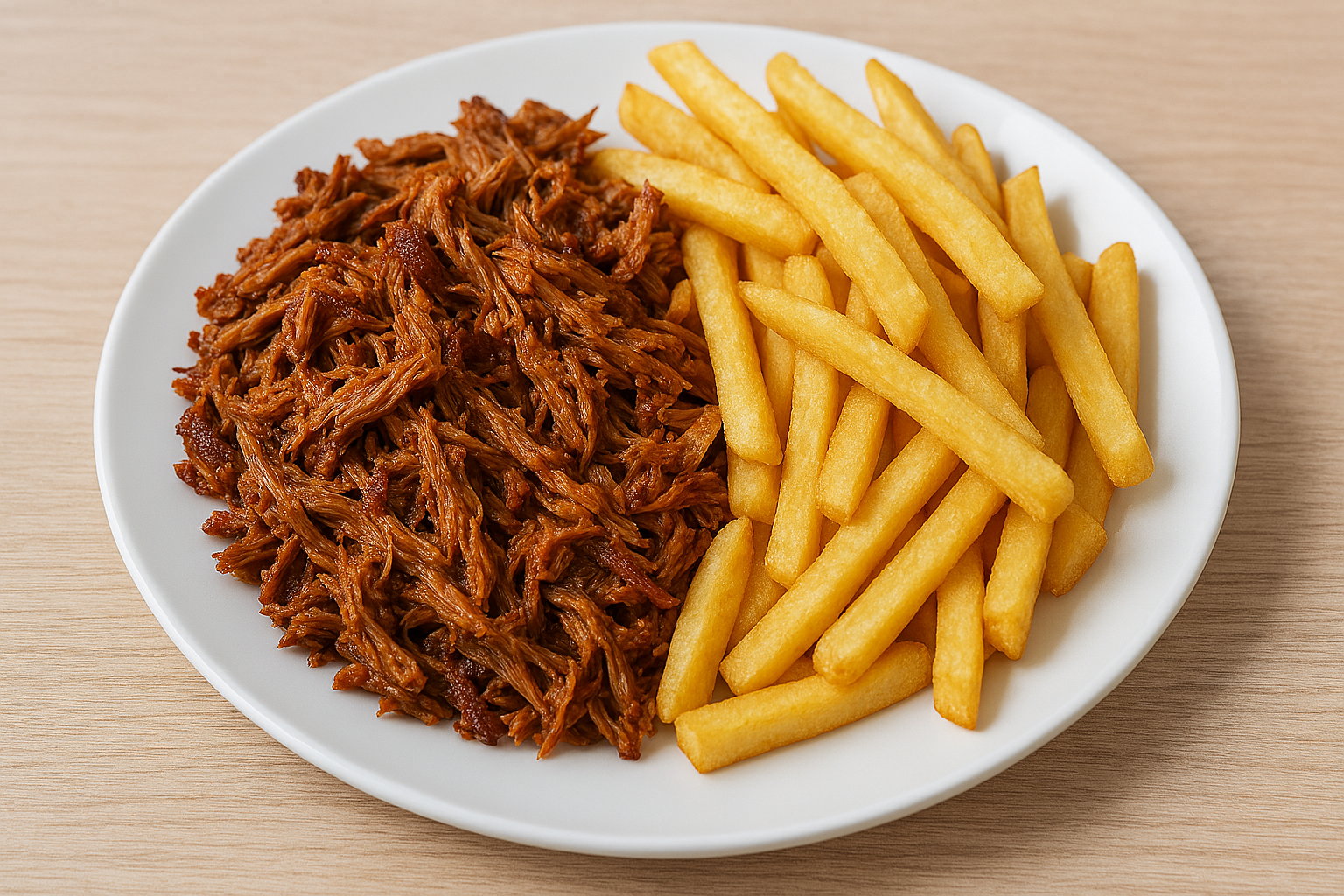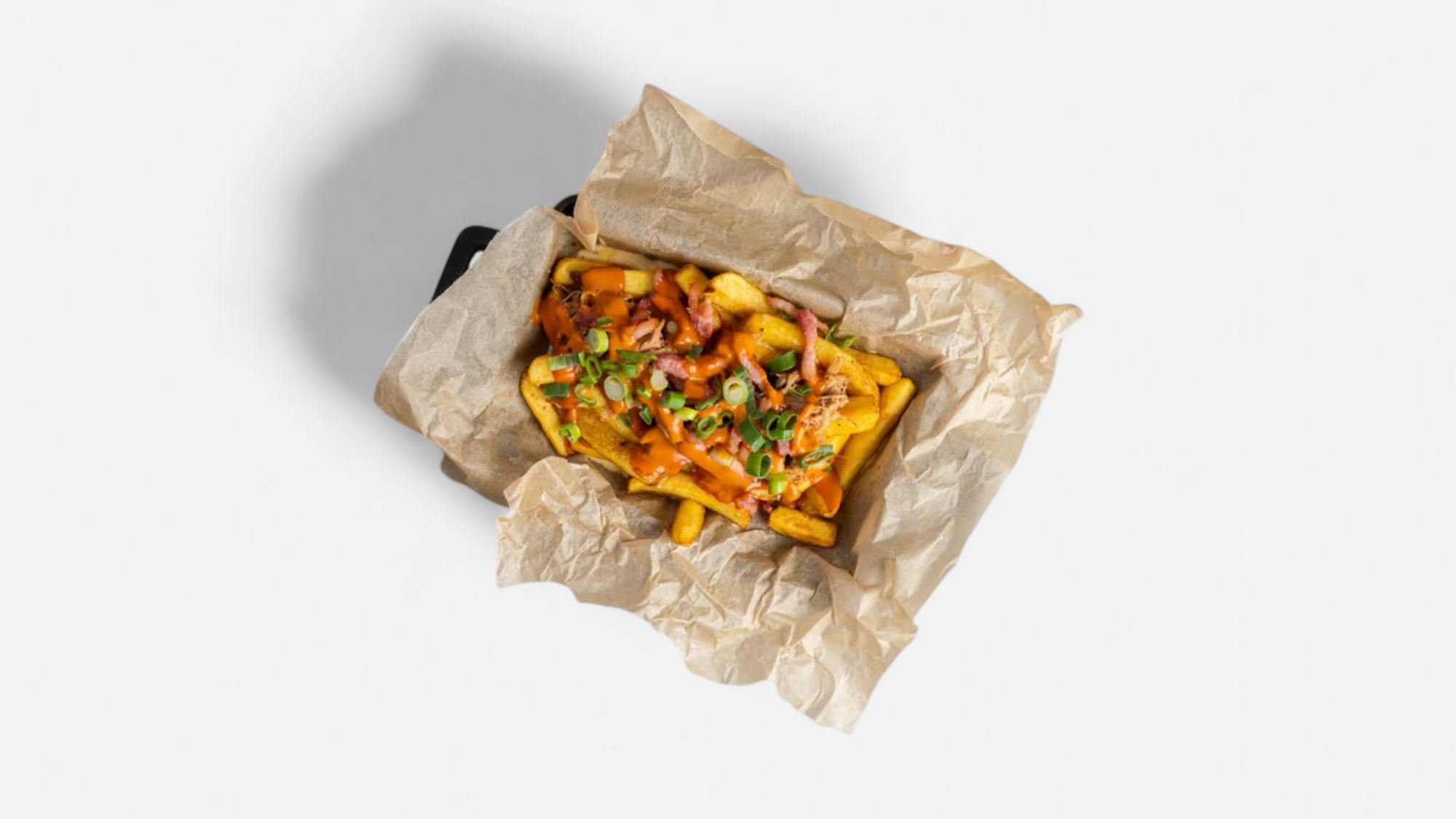 • Trhané BBQ mäso na hranolkách