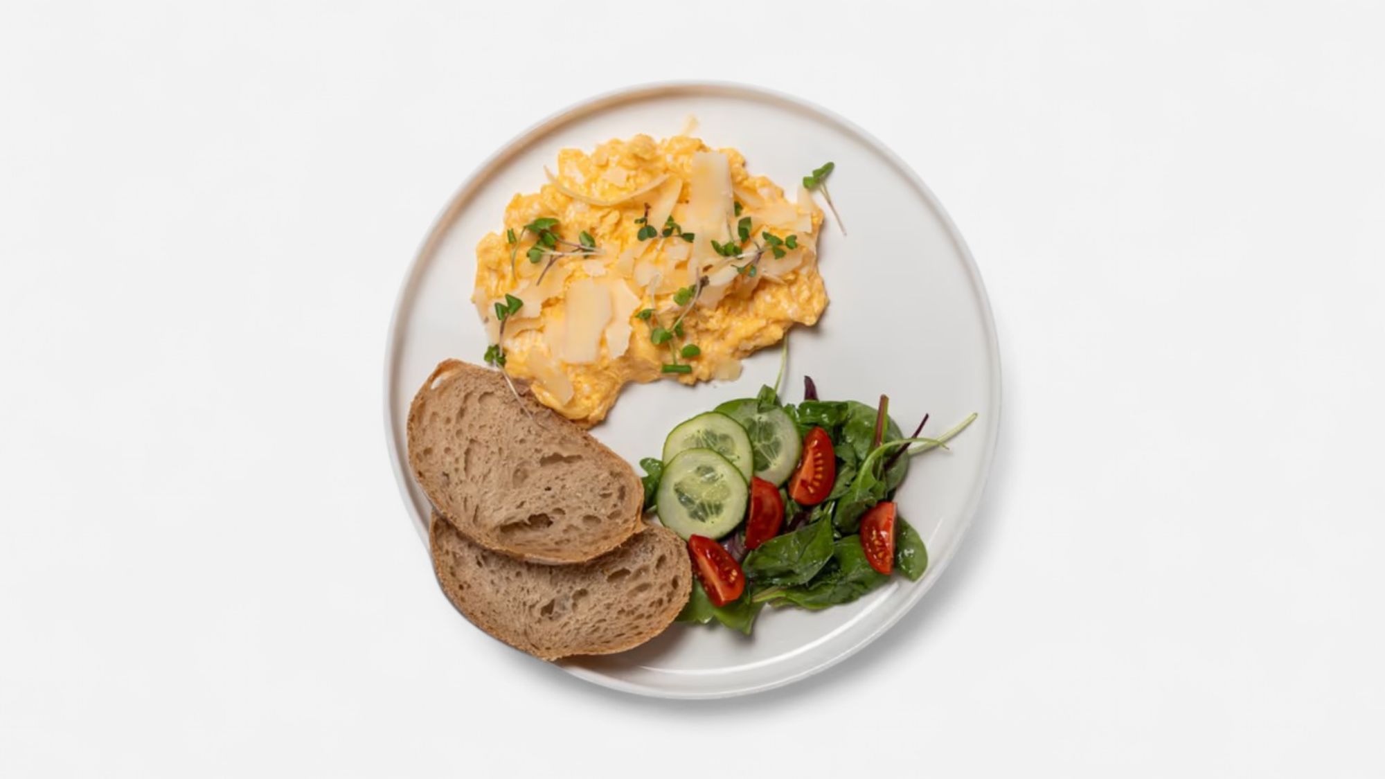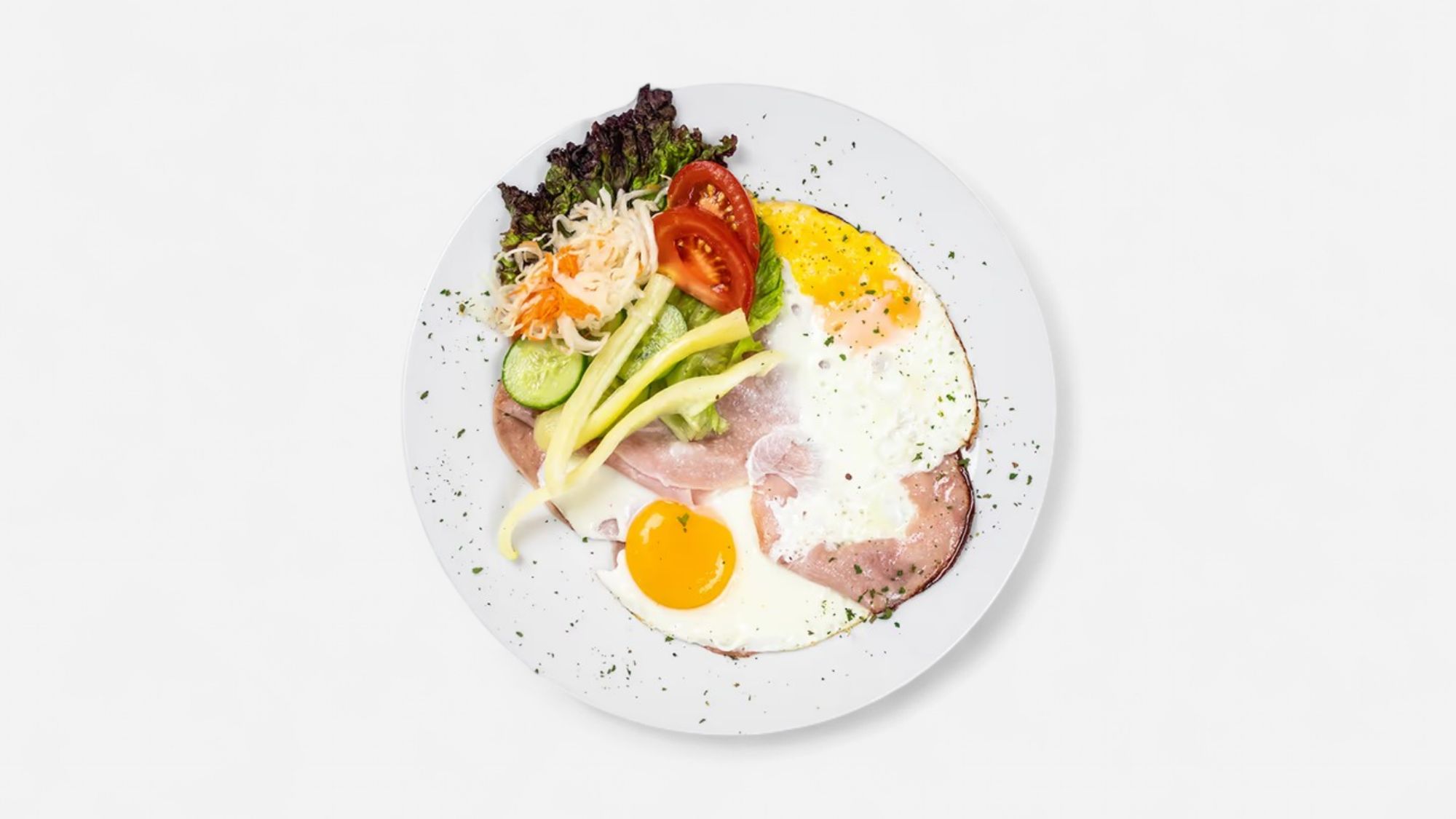 3ks vajíčok na opečenej šunke a posypané strúhaným syrom 200g / 1,3