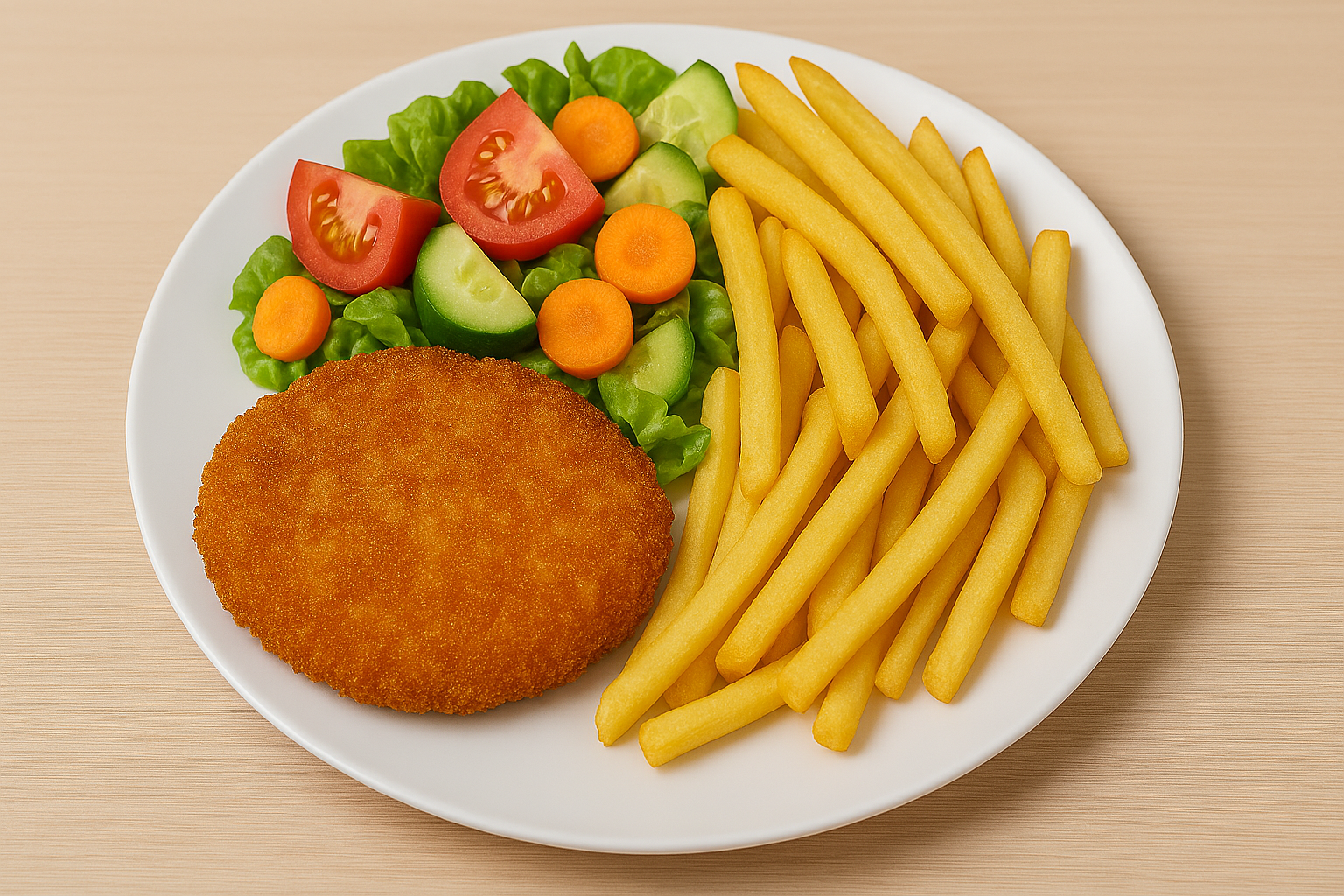 • Vyprážaný kurací rezeň s hranolkami